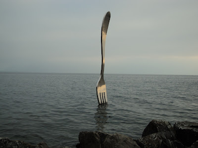 um lago que tem a particularidade de ter um garfo espetado... no local em frente do Alimentarium (museu da alimentação, que visitei durante o dia)