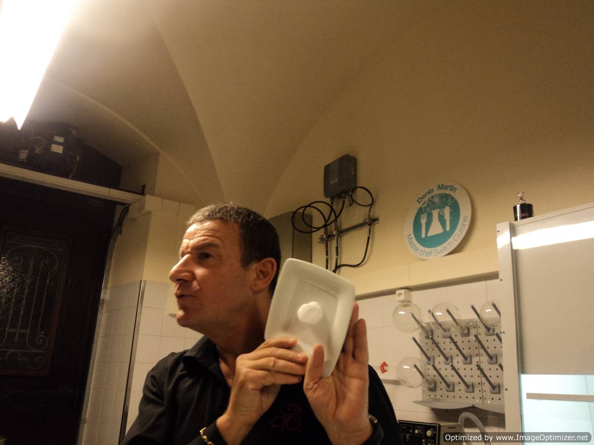 mangericão, menta, cogumelos, laranja... aromas extremamente potentes, frescos, vivos... conversámos sobre as vantagens da sua utilização, Denis Martin falou das novas perspectivas que abriam na cozinha, de projectos que tem, do que tem aprendido nos contactos com a empresa de aromas Firmenich (dias antes tinha lá passado à porta em Genève e sabia ser uma empresa com que Heston Blumenthal também trabalha).