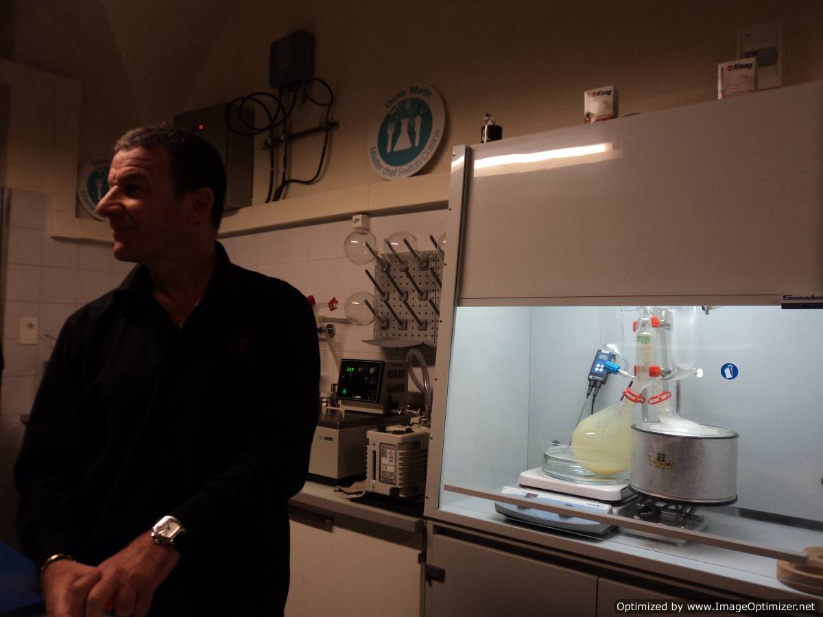 Falou-nos das inúmeras possibilidades que usar esta técnica lhe abria, de alguns exemplos que teríamos oportunidade de provar depois, e deu-nos para cheirar uma variedade de destilados que tinham obtido ali:
